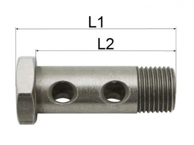Hohlschraube zur Verbindung von 2 Ringnippeln mit einem Gehäuseflansch.Technische Daten Hohlschraube M16x1,5 DN10 doppelt: