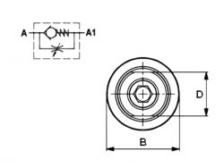Das Drosselrückschlagventil kompakte Bauform ermöglicht einen stufenlos einstellbaren/ reduzierten Volumenstrom in eine Flußrichtung. In die andere Flußrichtung strömt der Volumenstrom ohne Reduzierung.