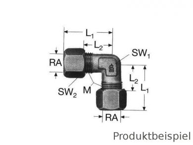 Die Winkelverschraubung für RA Ø = 10mm entspricht Ausführung KL DIN 2353 und DIN EN ISO 8434-1 - EC-L, leichte Baureihe.
